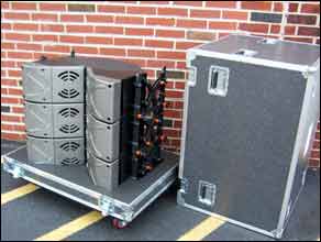 Quad NEXO PS-8 case in quarter x third pack size trunk with storage. Quad PS10 version also available in 30" x 30". |